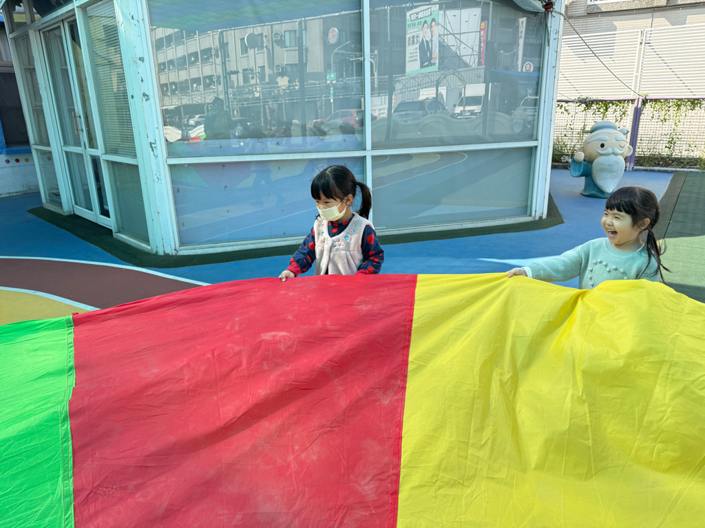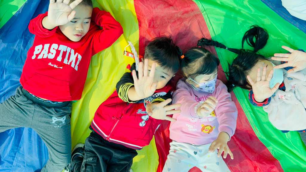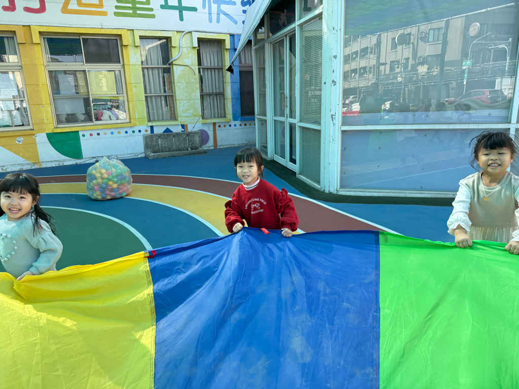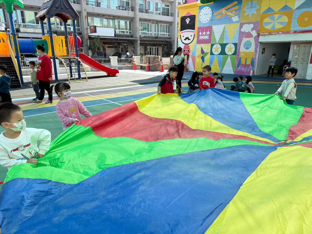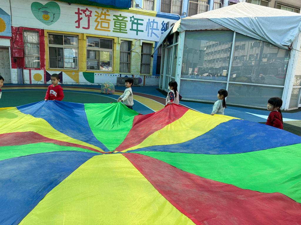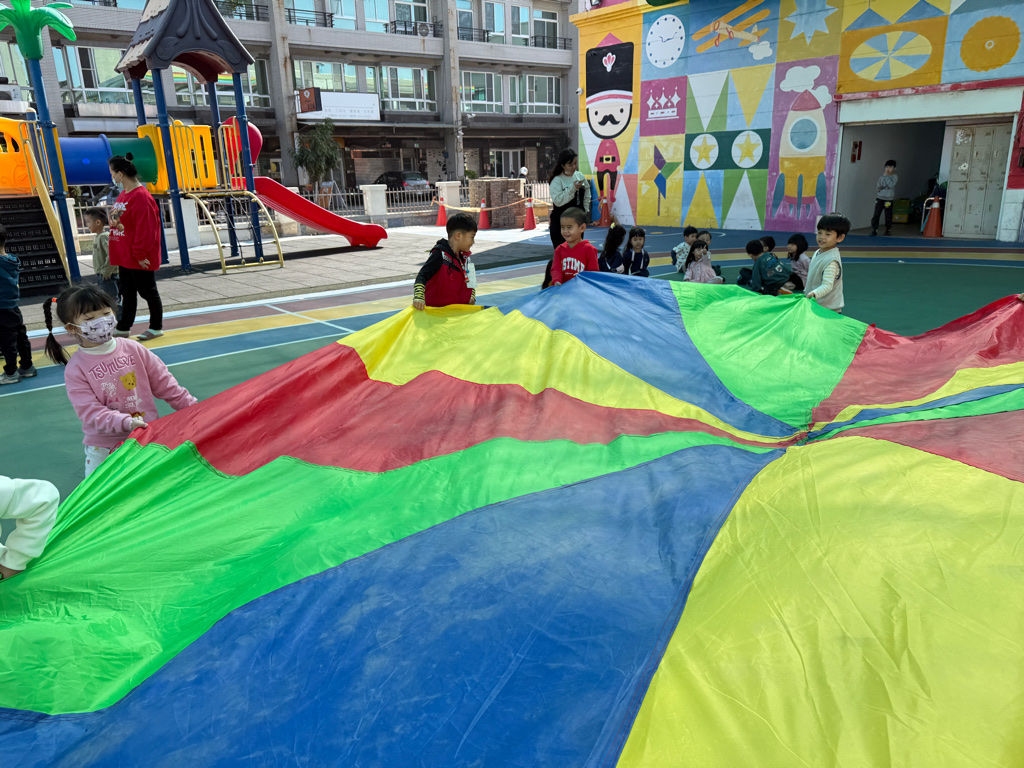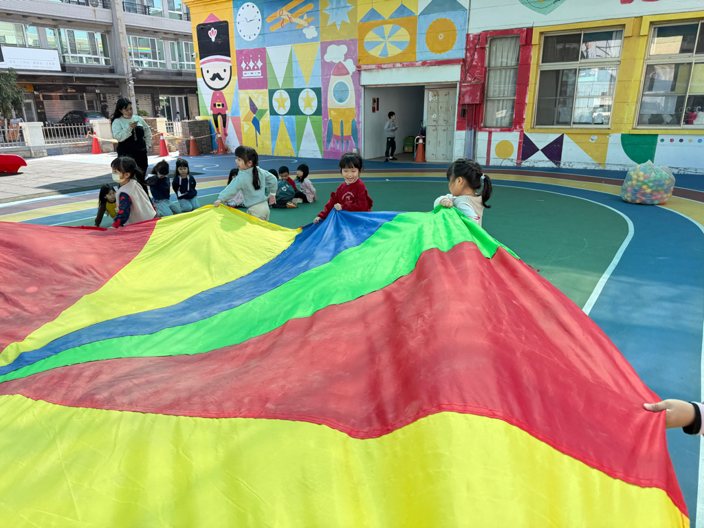 相簿名稱: 12-3玫瑰班-衣起繽紛樂-氣球傘遊戲