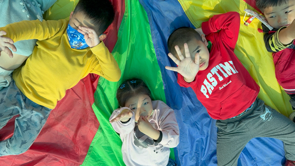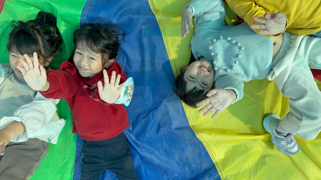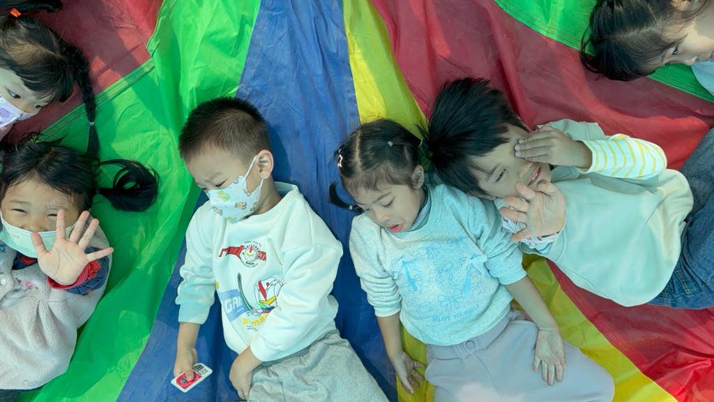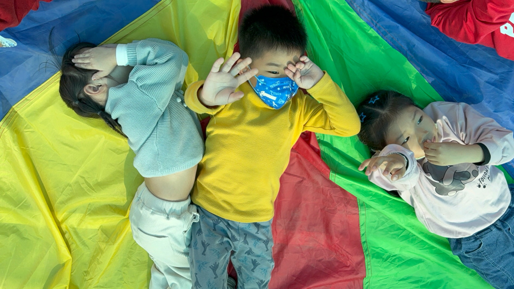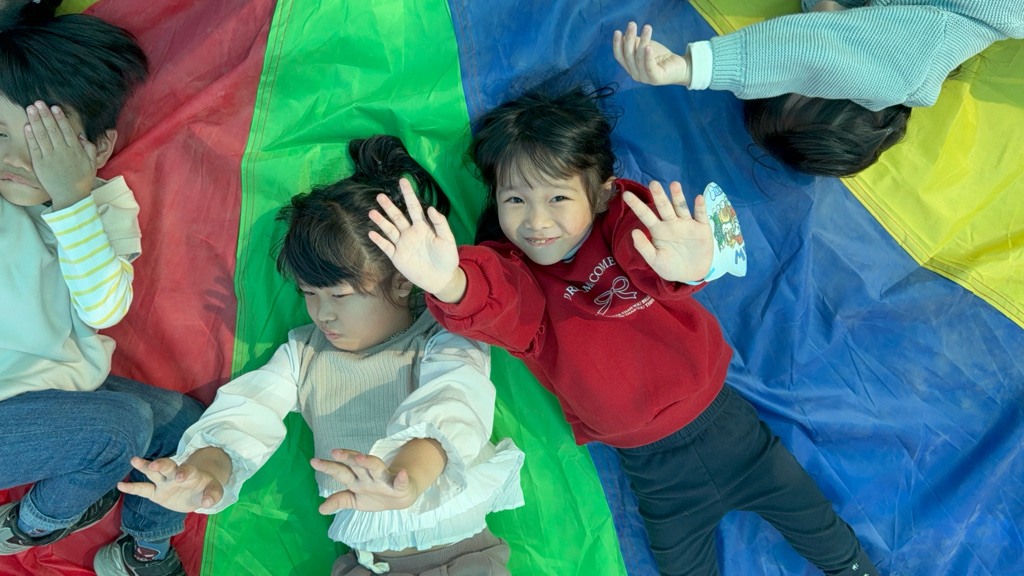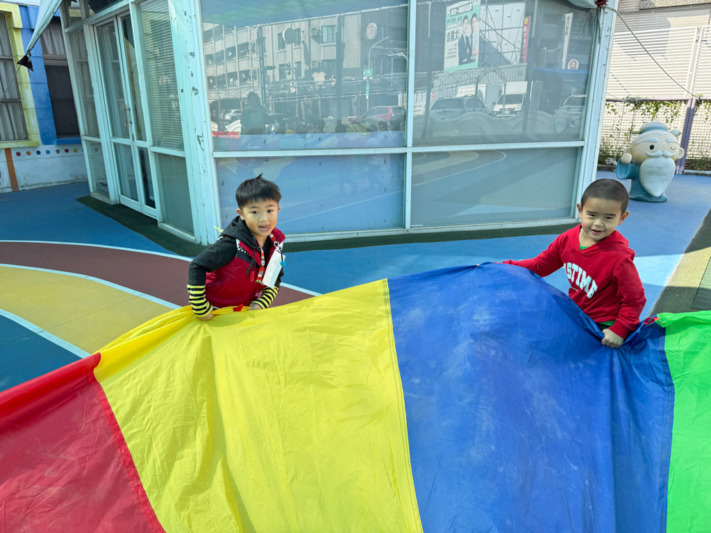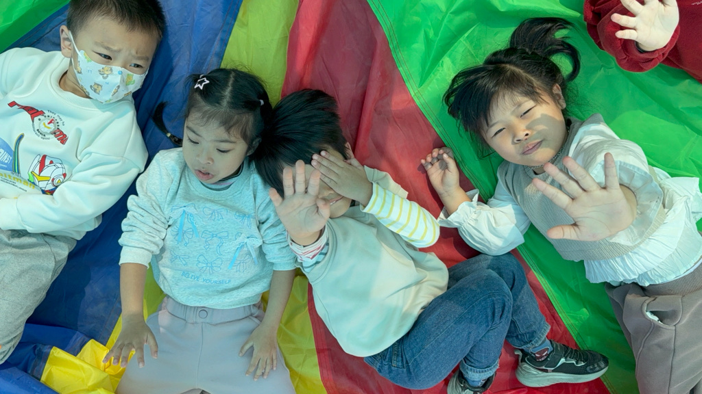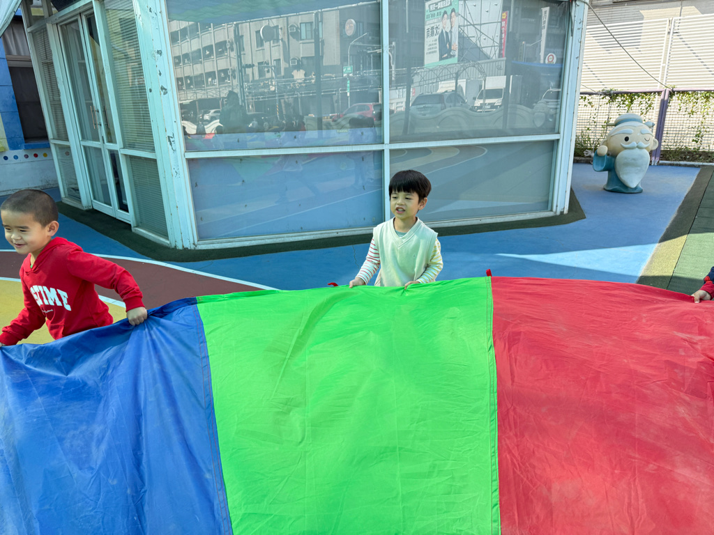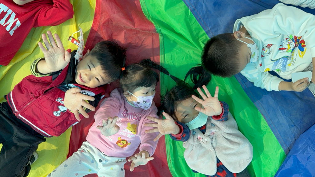 相簿名稱: 12-3玫瑰班-衣起繽紛樂-氣球傘遊戲