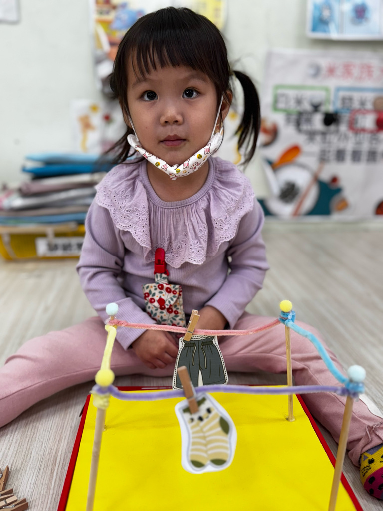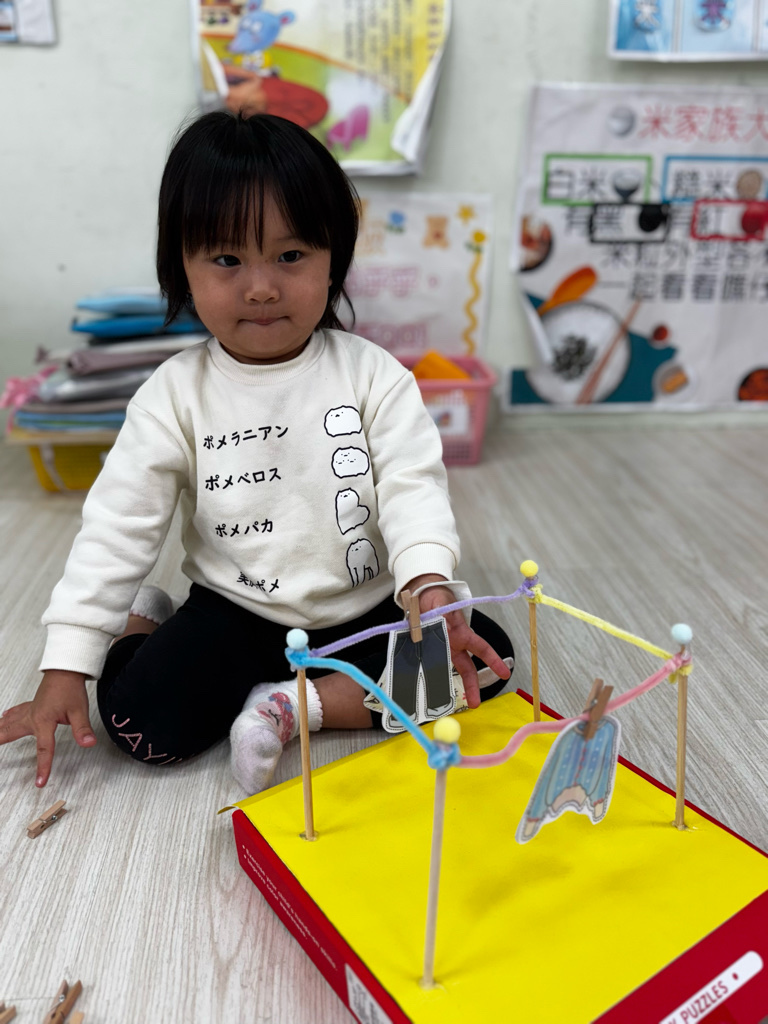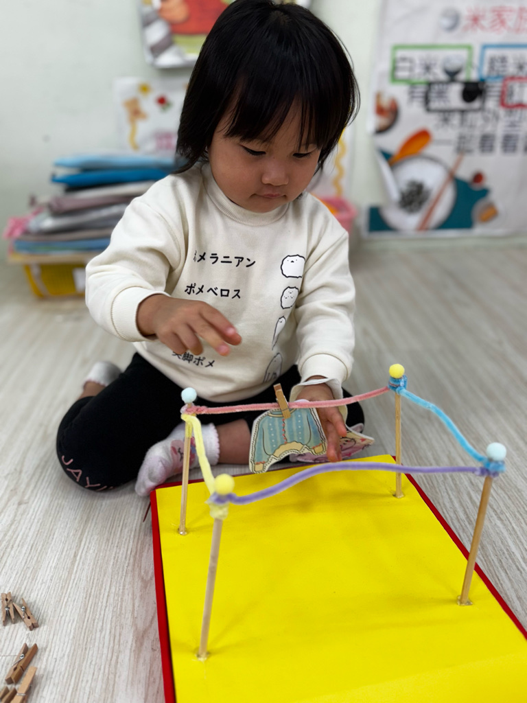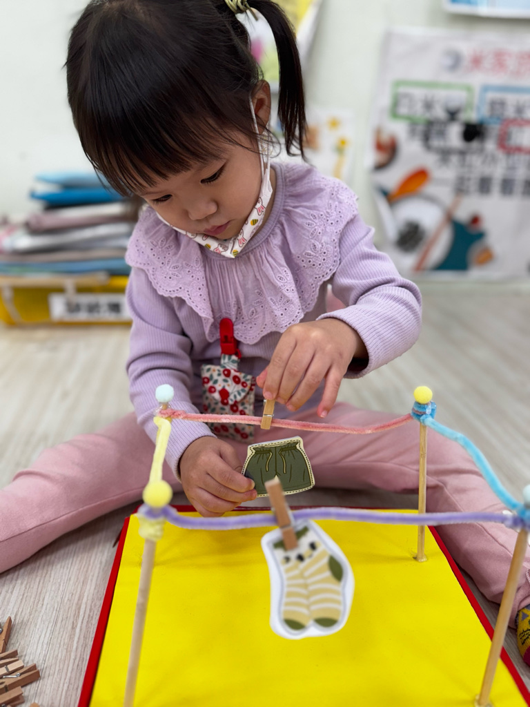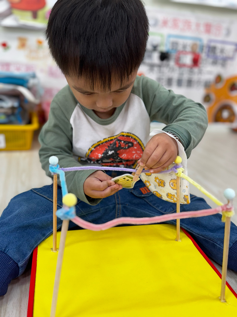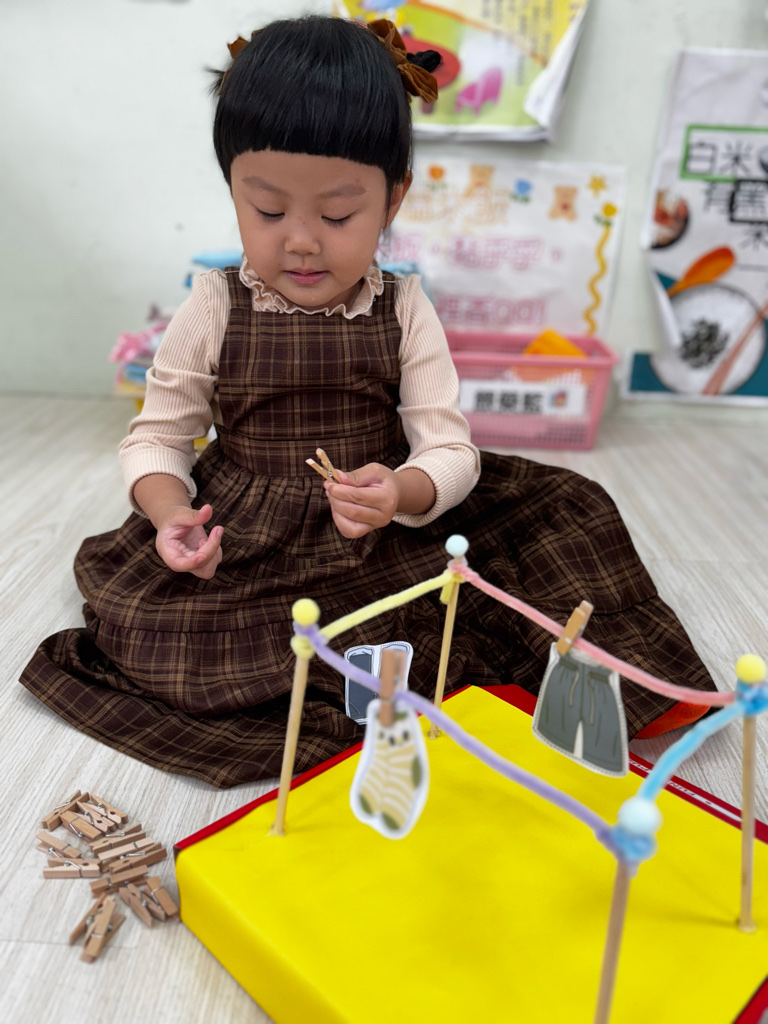 相簿名稱: 4-3百合班|衣起繽紛樂|夾衣服教具操作
