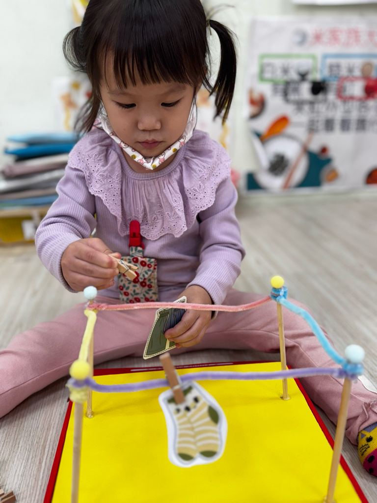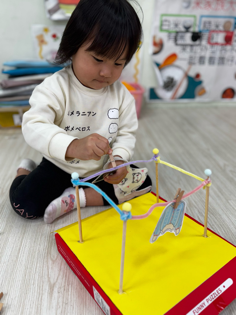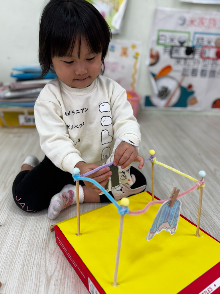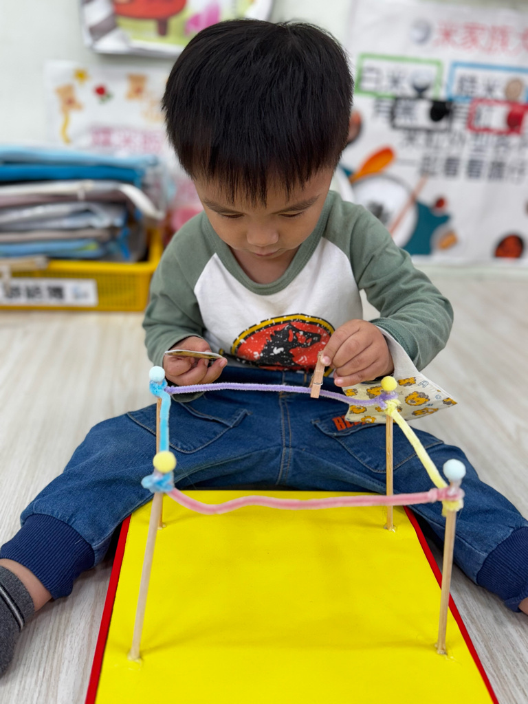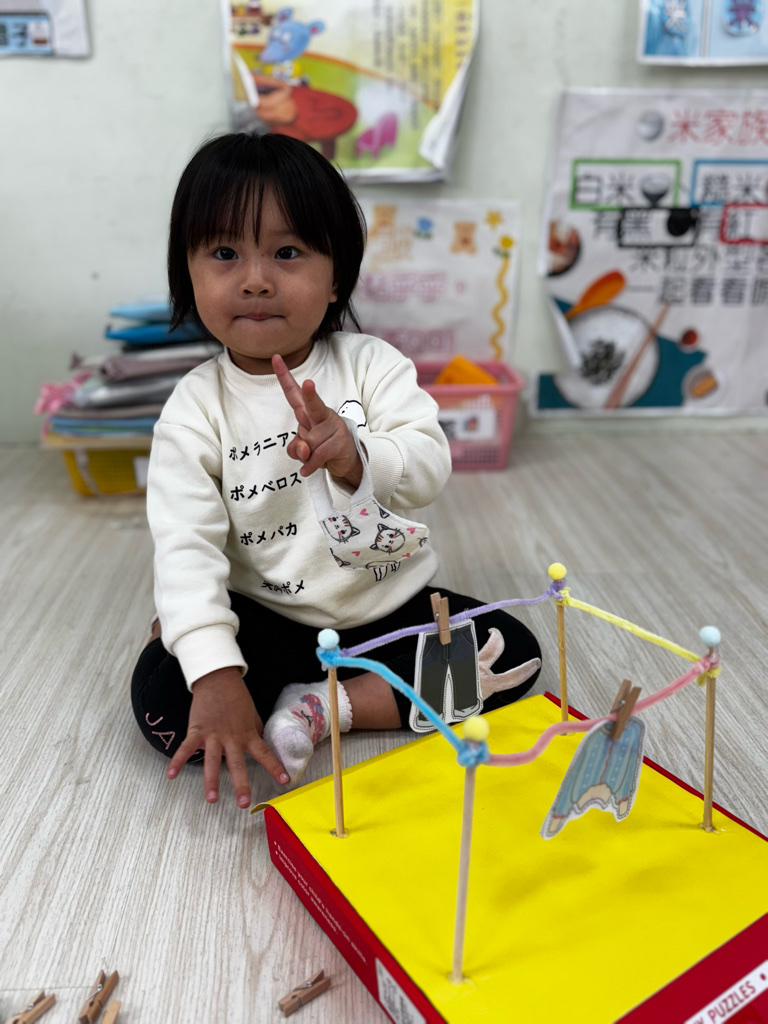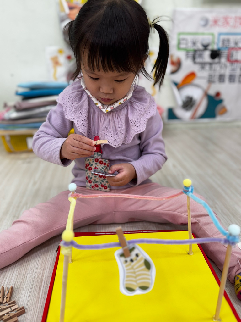 相簿名稱: 4-3百合班|衣起繽紛樂|夾衣服教具操作